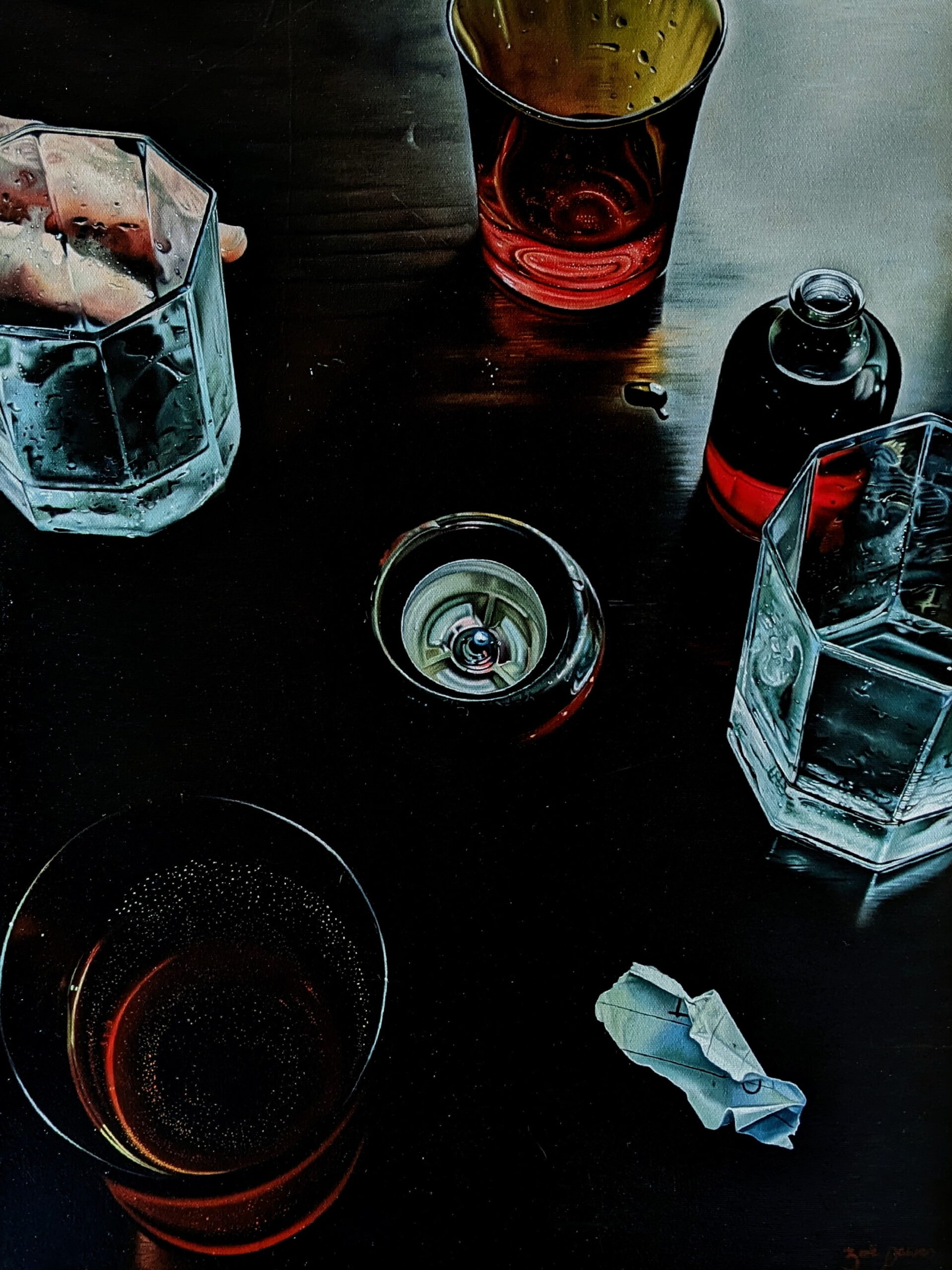 Zoë Dawes is a self-taught British artist who invites the viewer to meditate on the extraordinary within the ordinary by creating intricate photorealistic oil paintings that pay close attention to the realistic qualities of surface and texture and the interplay between light and shadow. By choosing to depict transient moments of familiarity that might otherwise be overlooked, Dawes’ photorealistic style encourages the viewer to immerse themselves in contemplation of the everyday through its commitment to precision and a minute level of detail. By utilizing a traditional representative style of painting, her practice subverts the notion that only grand or seemingly impressive moments are worthy of artistic portrayal, thus transforming how we perceive the commonplace.