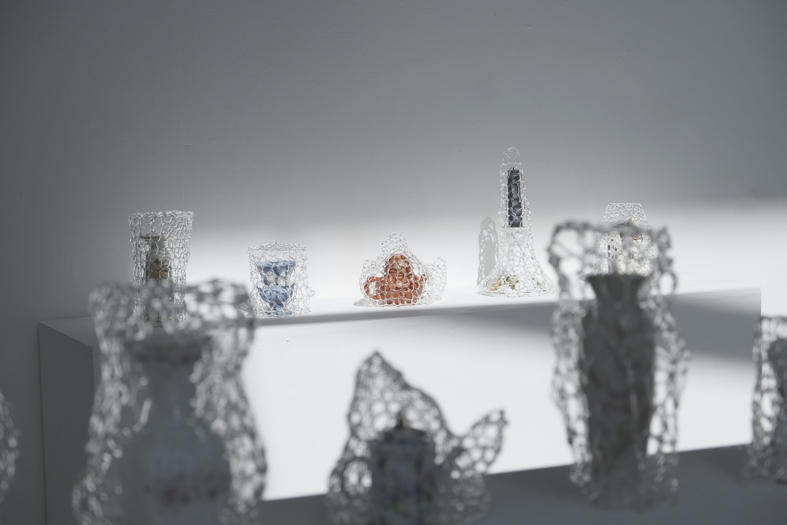 Even the British ceramics in this installation become “othered” within this context – forgotten, stripped of function, and culturally displaced. Like myself, these objects exist in a state of non-belonging. Surrounded by glass yet never fully possessed, they form a fragile structure of coexistence through rupture – not grounded in similarity, but in difference. This work seeks to reveal, through the “Wu” of glass, the complex relationships between cultural drift, blurred identity, and material fragility.