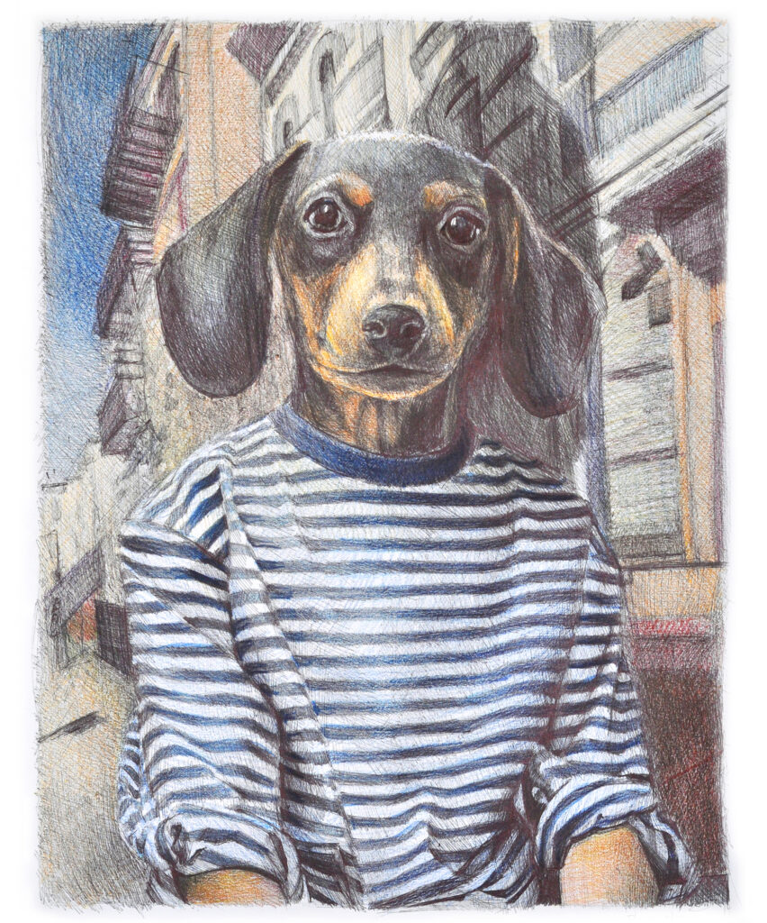 Artist’s Statement: In a search for a subject that could simply bring joy and positivity, I began by sketching dogs that later on were printed on postcards that I gifted to dog owners on the streets of the city. What started as a small gesture of kindness grew into a larger art project, where I explored the diversity of dog breeds and the heartwarming reactions of their owners across different neighborhoods. The drawing process itself unfolded organically, in coffee shops and parks, adding an element of spontaneity and connection to each piece.