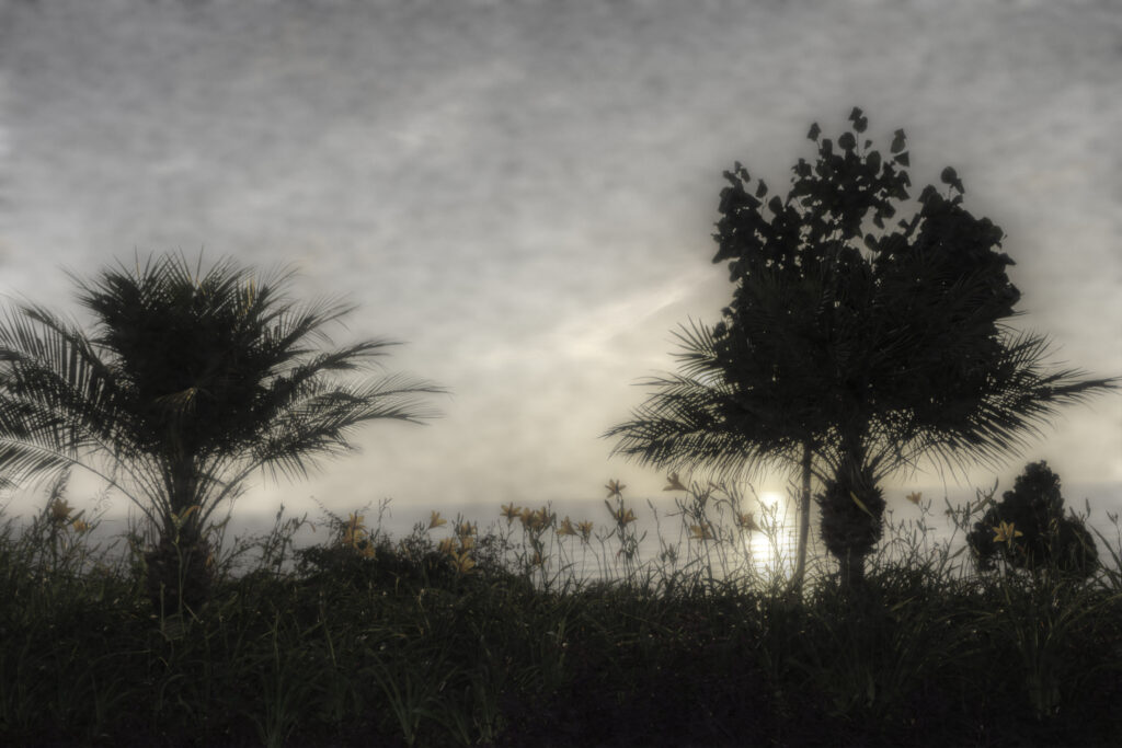 Artist’s Statement: Nostalgia Sunset captures the serene beauty of twilight as the sun dips below the horizon, casting a warm, golden glow over the tranquil landscape with small flowers. The image evokes a sense of longing and reminiscence, with soft hues of orange, blues, and dark cyan blending seamlessly into the sky. Gentle waves reflecting the last light of day, while the front silhouettes of trees give a small touch of melancholy. This photograph invites viewers to pause, reflect, and lose themselves in memories of days gone by, wrapped in the comforting embrace of a perfect sunset.