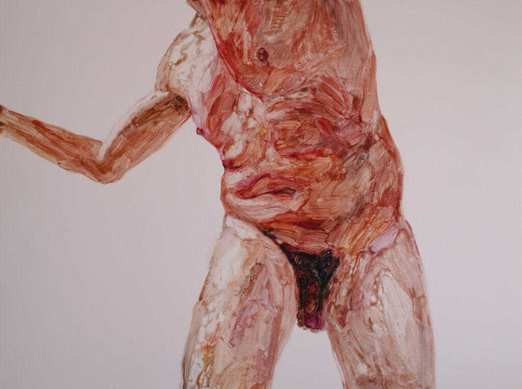 Hsu’s incandescent figures gracefully express a raw and vulnerable corporeality in flux.