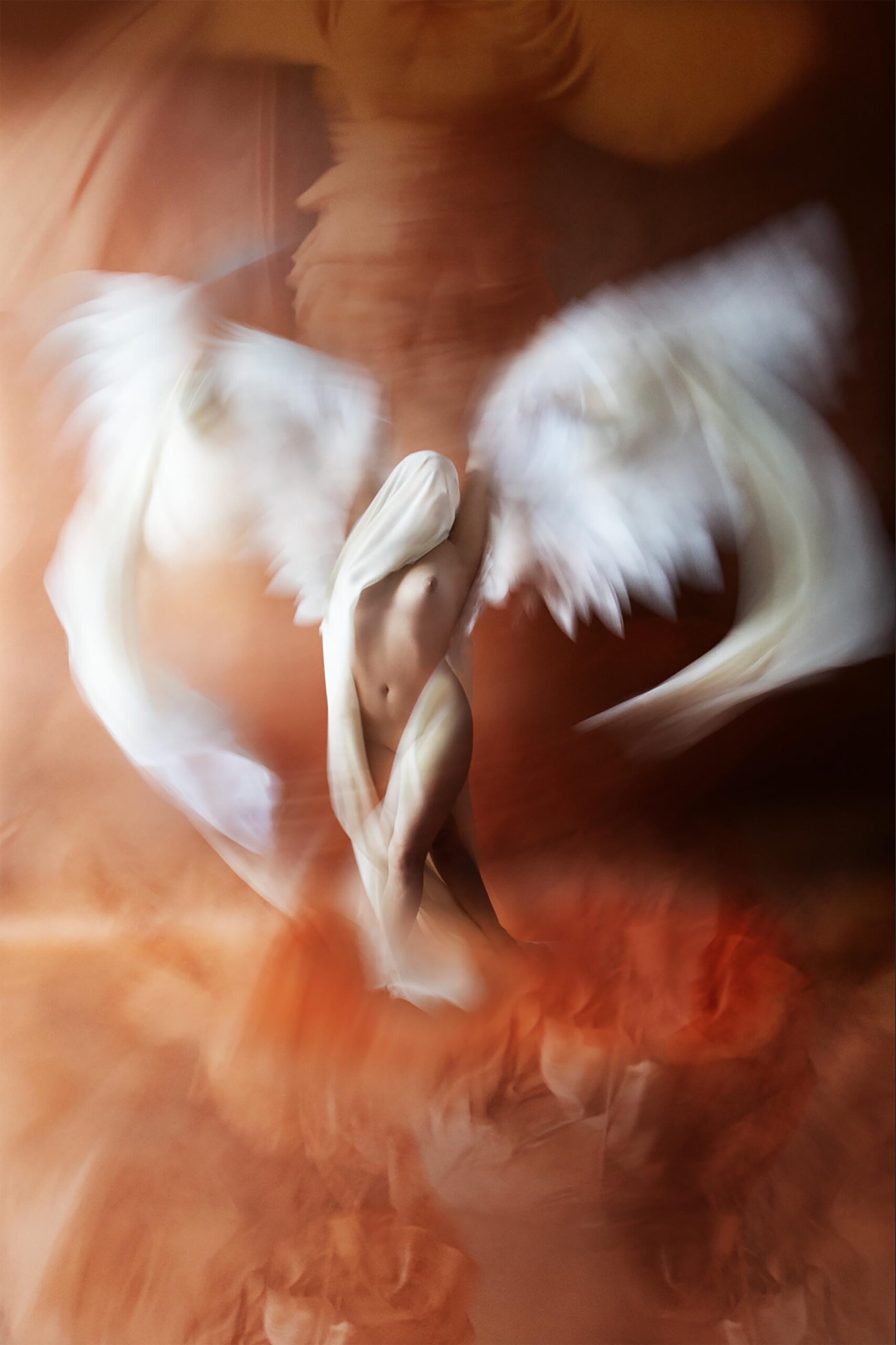 The State of Being is a work where one perceives the emergence of a deep liberation, that of the sacral chakra, vibrating with an orange energy in perpetual motion. Like a vortex, it opens a passage, an inner dance where the life force unfolds. Its shape, resembling a womb, embodies the matrix of transformation, the sacred space where our inner feminine angel is born. In its flight, it guides us to a state of purity and calm, where the soul, finally free, settles into an anonymous and silent space, finding peace in its simplest essence.