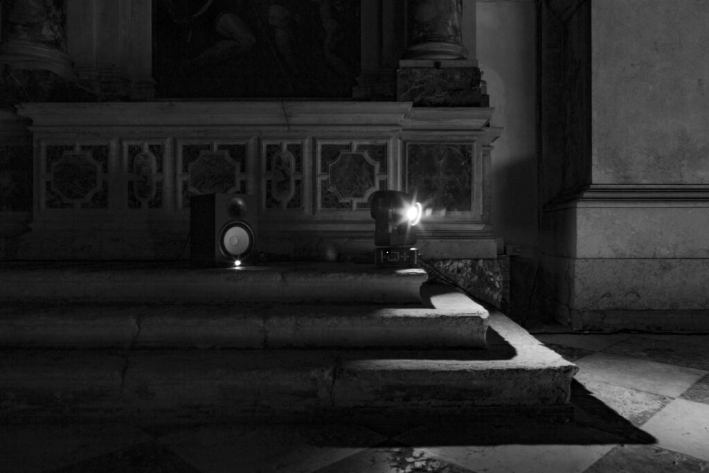 Site-specific interactive/generative quadraphonic audio, and dmx lights installation/performance