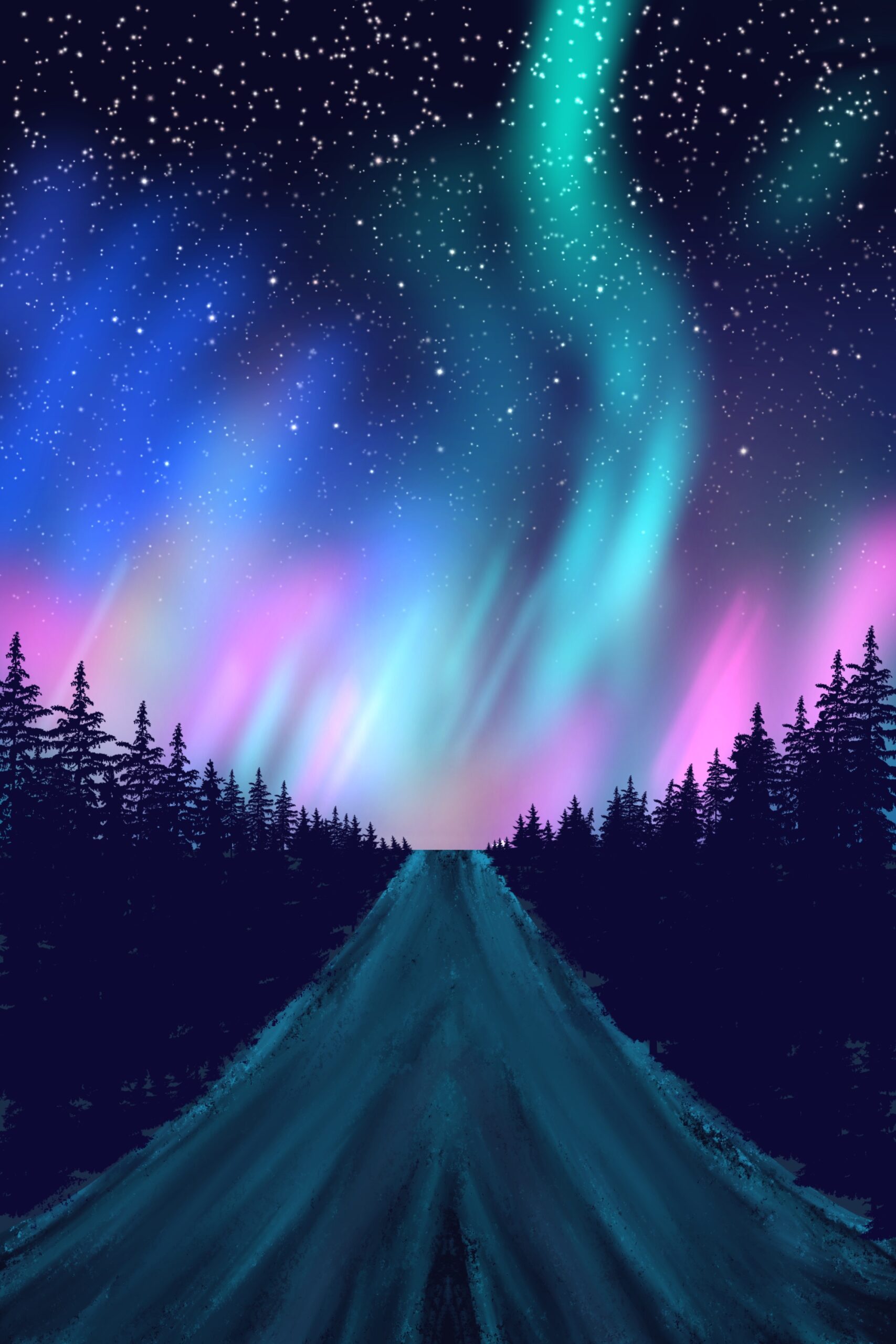 Sree Pragnya Vure, Northern Lights, 2025, Digital art made with Procreate.