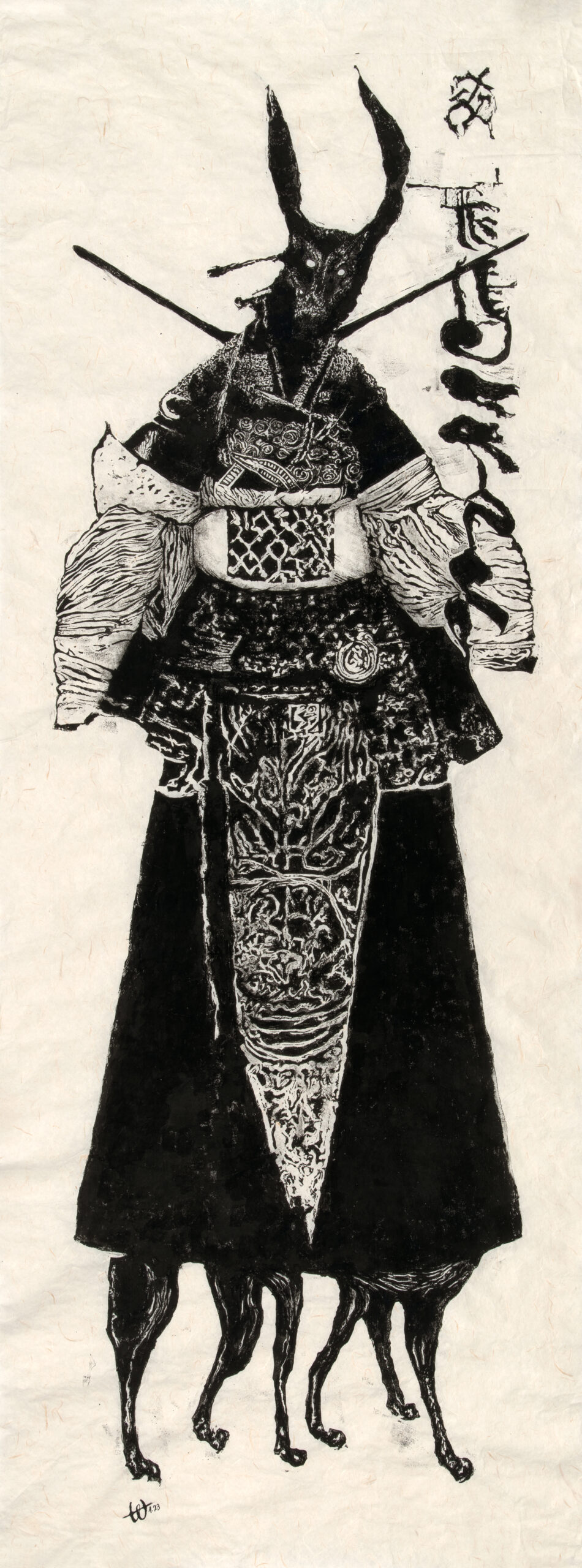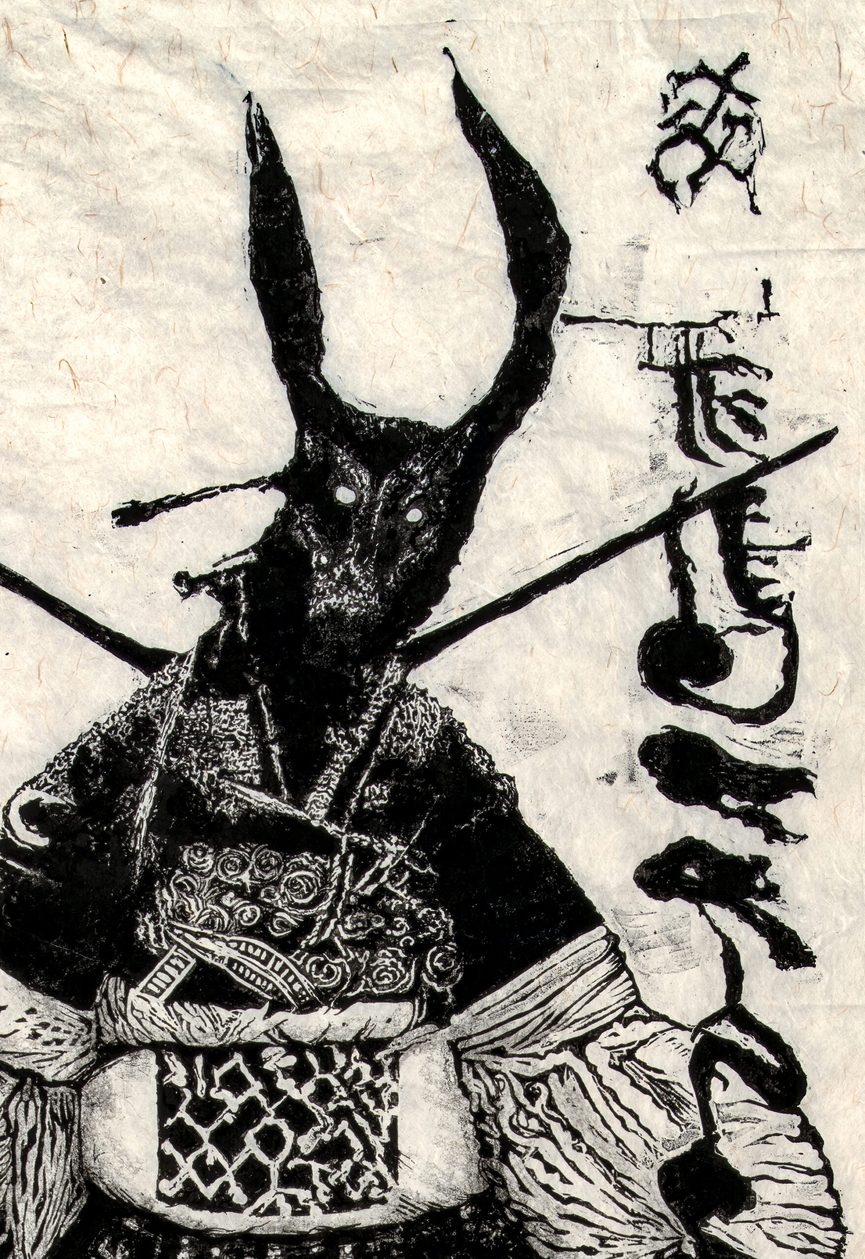 Wretched Blasphemy (Nicholas Angel), Sutekh, 2024, Handmade ink, acrylic, charcoal on Washi paper, 32″ x 80″ (813 mm x 2032 mm).